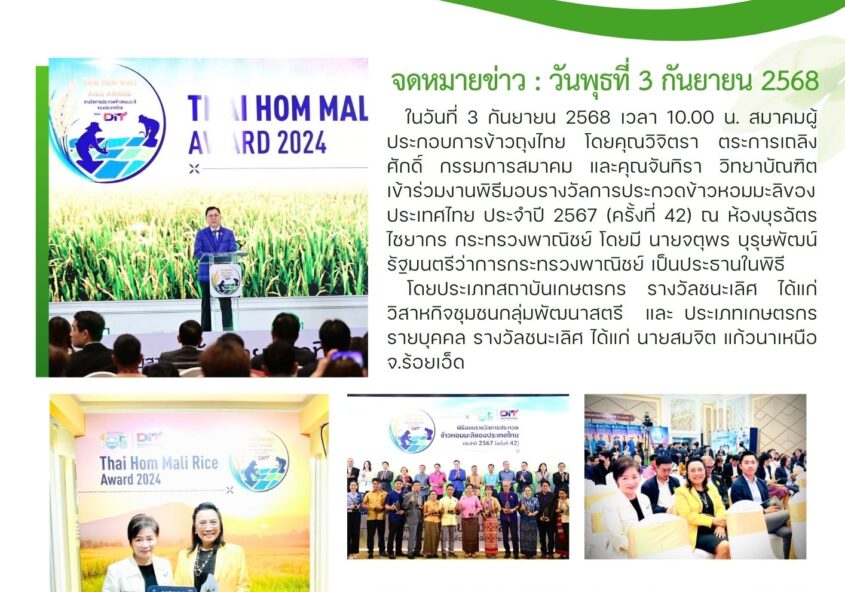 งานพิธีมอบรางวัลการประกวดข้าวหอมมะลิของประเทศไทย ประจำปี 2567 (ครั้งที่ 42)